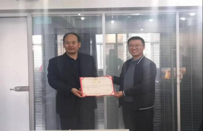 洽谈后,李书记与许主任共同对“创新创业实践基地”进行了揭牌,并对法学院聘用的三位实践导师颁发了聘书。