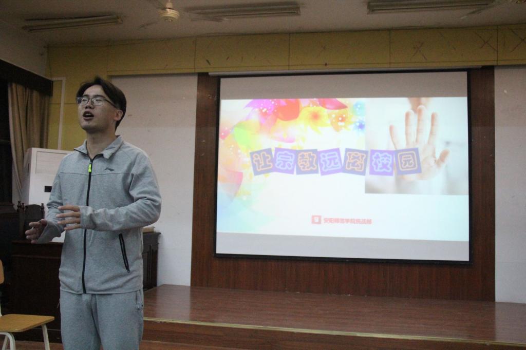 10月15日晚,法学院在模拟法庭举办了新生入学教育之宗教知识教育专题讲座,此次讲座由20级辅导员孙晓峰主讲,20级新生参加了本次讲座。