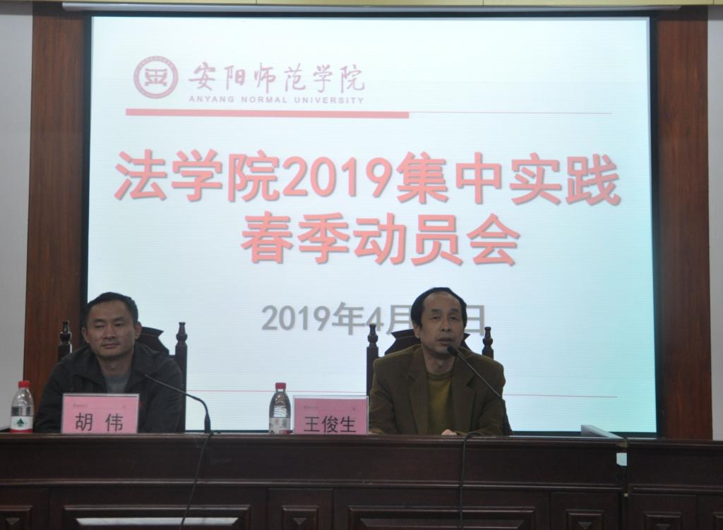 4月21日晚7时,法学院在模拟法庭举行2018级法学专业和电商法专业集中实践春季动员会。王俊生党委书记和胡伟老师以及2018级法学本科、法学专升本及电商法专业的同学参加动员会。