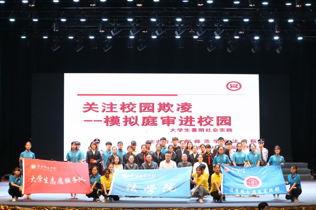 7月2日上午八点,安阳师范学院法学院与安阳市中级人民法院少年庭、安阳市第三十二中学在安阳大会堂联合开展了以“反校园欺凌”为主题的模拟庭审进校园活动。出席此次活动的有安阳市中级人民法院少年庭副庭长刘振中、法官助理郭会平、第三十二中学校长傅彤方、副校长吕红、副校长岳卫忠、安阳师范学院法学院分团委负责人李晓悦。