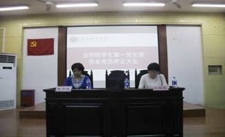 5月24日下午三点,法学院学生第一党支部在模拟法庭召开预备党员转正大会,法学院学生第一党支部全体党员参加了此次会议。此次会议主要是讨论预备党员转正的问题,法学院学生第一党支部书记陈贵娥老师主持了支部转正大会。