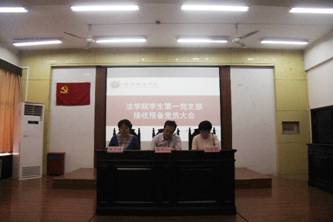 5月24日下午一点,法学院学生第一党支部在模拟法庭召开了接收中共预备党员大会。出席此次会议的有校党委组织部张柱山老师、学生第一党支部书记陈贵娥老师,本次会议由学生第一党支部书记陈贵娥老师主持。