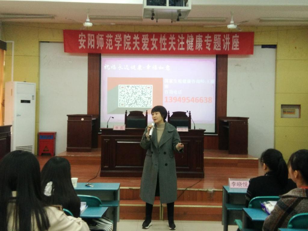 为了全面贯彻“健康第一”的指导思想,防控学生常见病和传染病由此开展此次讲座。讲座之初,张蕊书记为我们简单介绍了讲座内容,随后主讲人刘丽萍老师从各个方面为同学们讲解了女性应该如何防范自身,如何让自己更健康,台下同学认真聆听,热情响应。讲座最后张蕊老师又给同学们补充说明了一些注意事件,同学们受益匪浅讲座成功举办。
