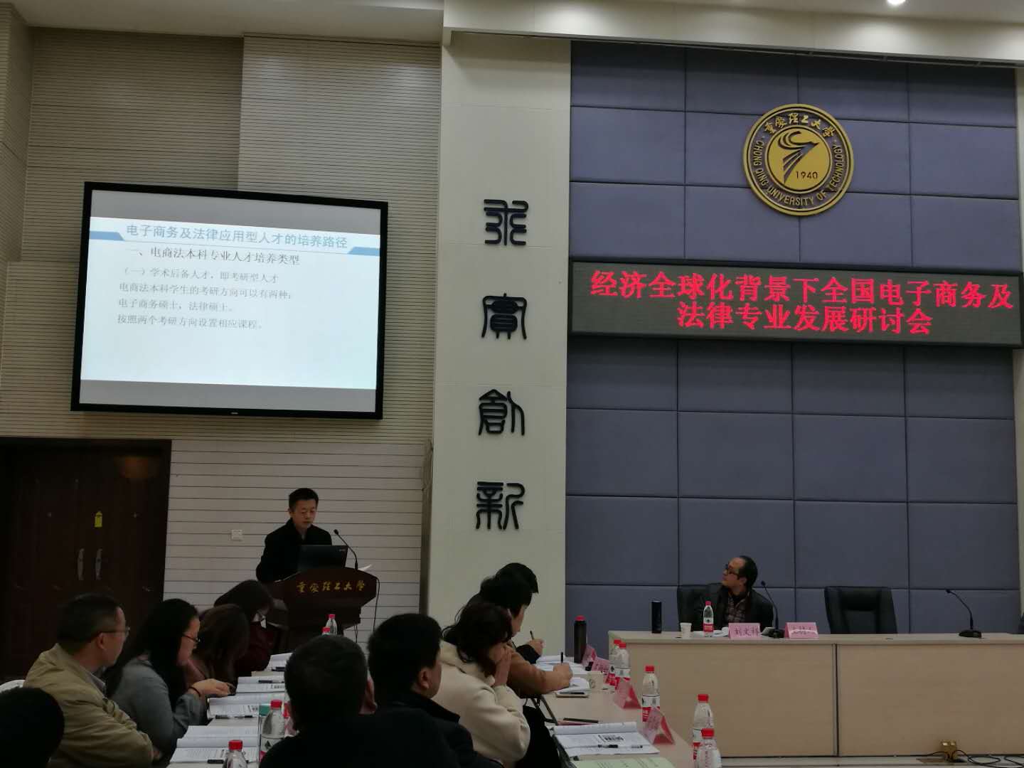 11月23、24日,经济全球化背景下全国电子商务及法律专业发展研讨会暨“第三届全国高校电子商务及法律专业联盟年会”在重庆理工大学知识产权学院举行。本次研讨会由全国高校电子商务及法律专业联盟主办、重庆理工大学重庆知识产权学院承办。教育部高等学校电子商务专业教学指导委员会委员、武汉大学博士生导师张李义教授,西北政法大学商学院党委书记路建潮教授,重庆知识产权学院院长、博士生导师苏平教授,北京邮电大学国际学院院长陈岩以及来自全国电子商务及法律专业联盟各高校、武汉大学出版社、重庆大龙科技集团的代表等共50余人出席本次会议。安阳师范学院法学院党委书记王俊生、副院长冯凡英、专业教师胡伟、谷景志参加了本次会议。