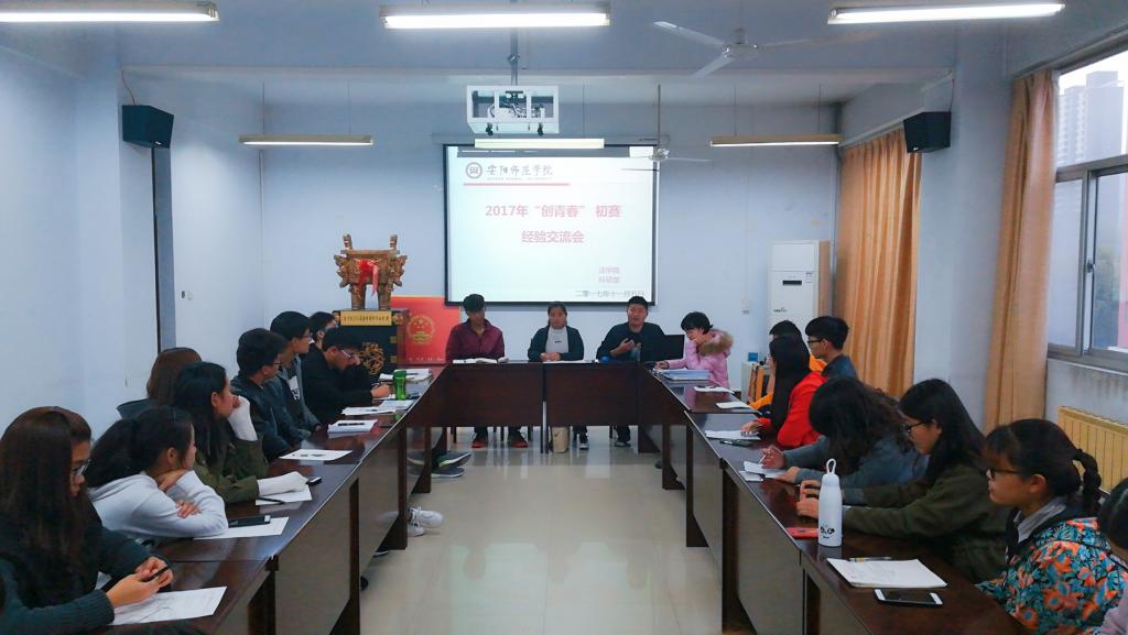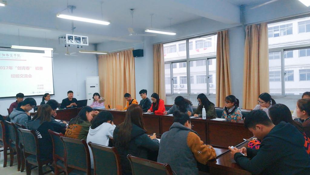 2017年 11月 5日17时,法学院2017“创青春”初赛经验交流会于和容楼会议室召开。出席活动会议的科研部部长王晓娇、副部长石天及各部员和参与竞赛的各小组组长。