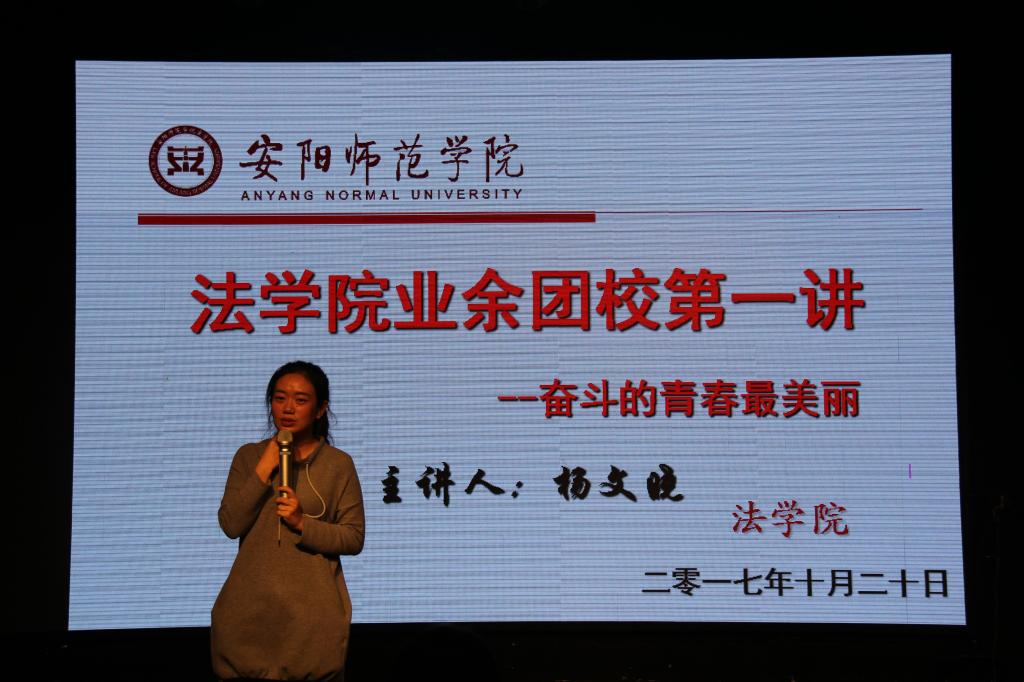 10月20日,晚上7点,法学院分团委业余团校培训之业余团校第一讲于理阶101准时举办,法学院全体分团委学生会成员参加此次培训,法学院分团委书记杨文晓老师做第一讲。
