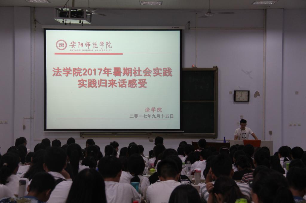 9月15日,法学院2017年暑期社会实践归来话感受活动于和展阶梯301举行,法学院分团委书记杨文晓老师出席此次大会,法学院2017级全体学生参加此次大会。十一名暑期社会实践的优秀代表作为主讲参加此次活动,畅谈自己的暑期实践经历,为2017级新生提供宝贵经验。