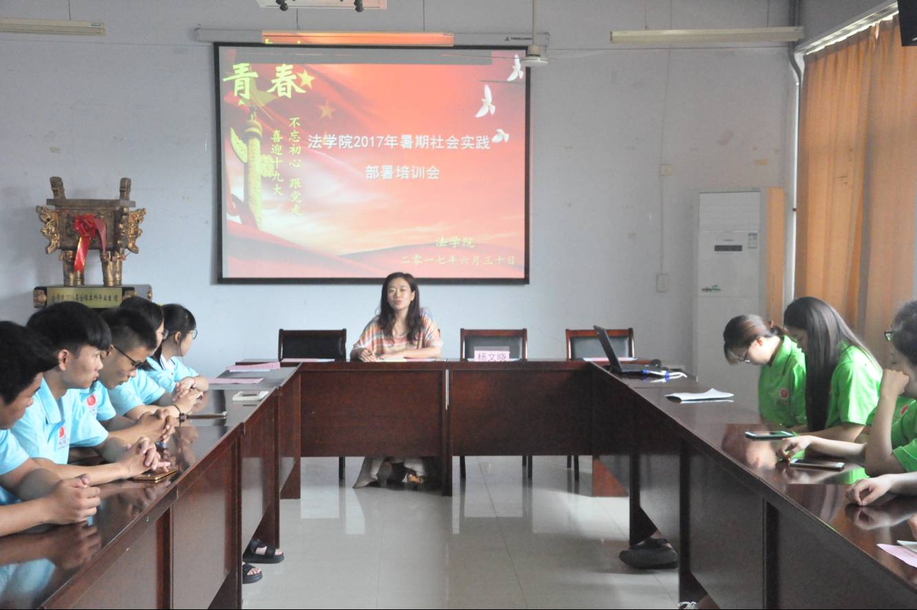 6月30日,法学院2017年暑假社会实践部署培训会于系办336会议室召开。法学院分团委书记杨文晓为主讲人,法学院暑期社会实践成员参加此次培训会。