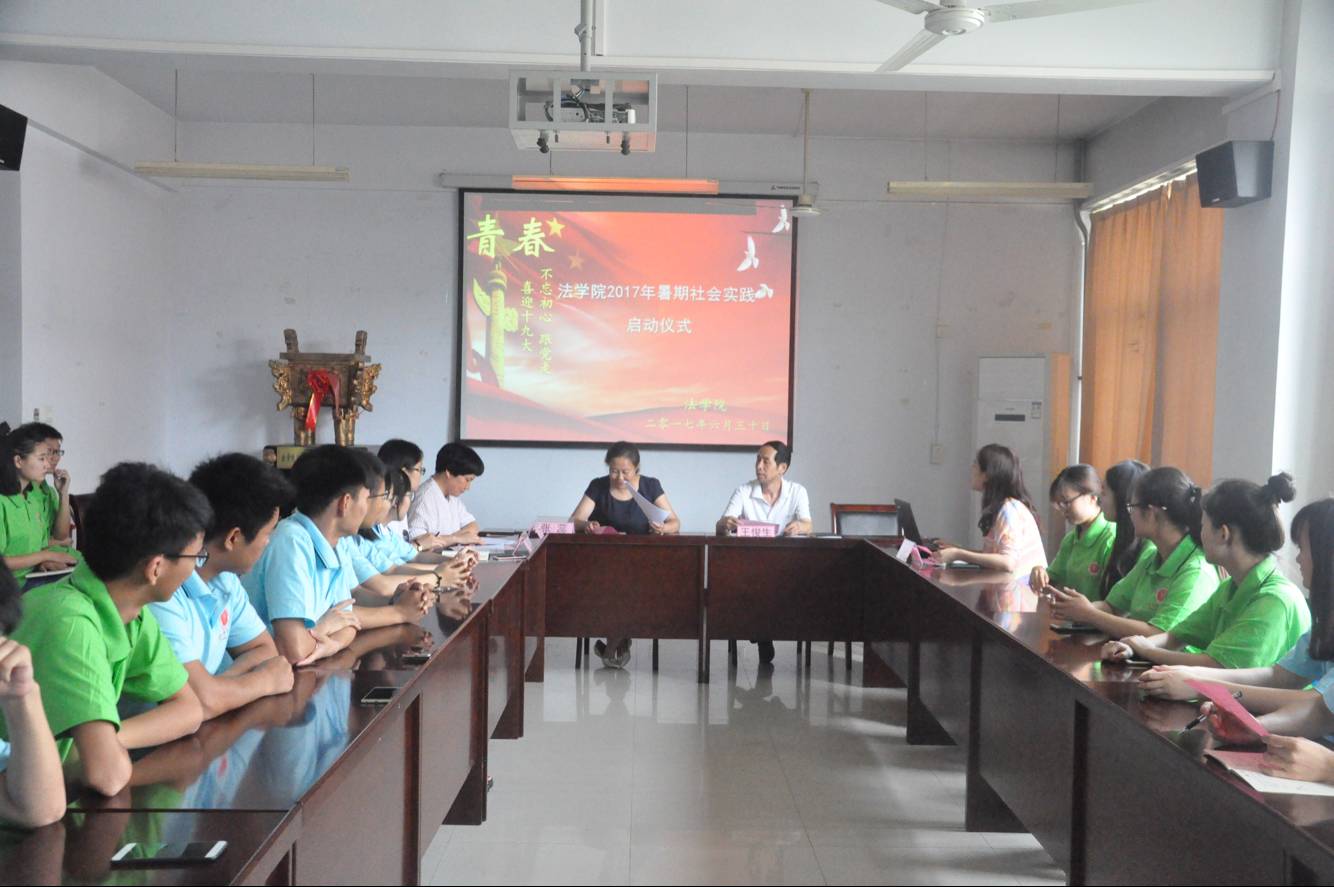法学院2017年暑期社会实践部署培训会启动仪式于6月30日在系办会议室336举行,法学院党委书记王俊生、党委副书记张蕊、分团委书记杨文晓、学工办主任陈贵娥和辅导员李晓悦出席此次启动仪式。法学院暑期社会实践成员参加了此次启动仪式。